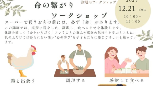 活動レポート 【活動レポート】12/21(日)『命の繋がりワークショップ』~鶏と出会う、調理する、感謝して食べる~ 2025年12月23日 kawazoe https://fjq.jp/wp-content/uploads/2025/07/logo_header.png 《FJQ》ファザーリング・ジャパン九州公式サイト