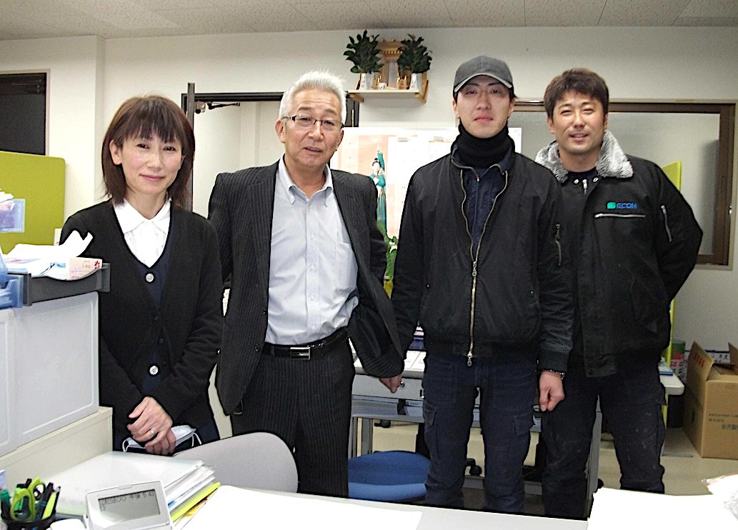 社長(左から2人目)と社員の皆様Q:それは素晴らしいですね。これまで3名の男性職員の方が取得されたそうですが、主な取得実績を教えて下さい。